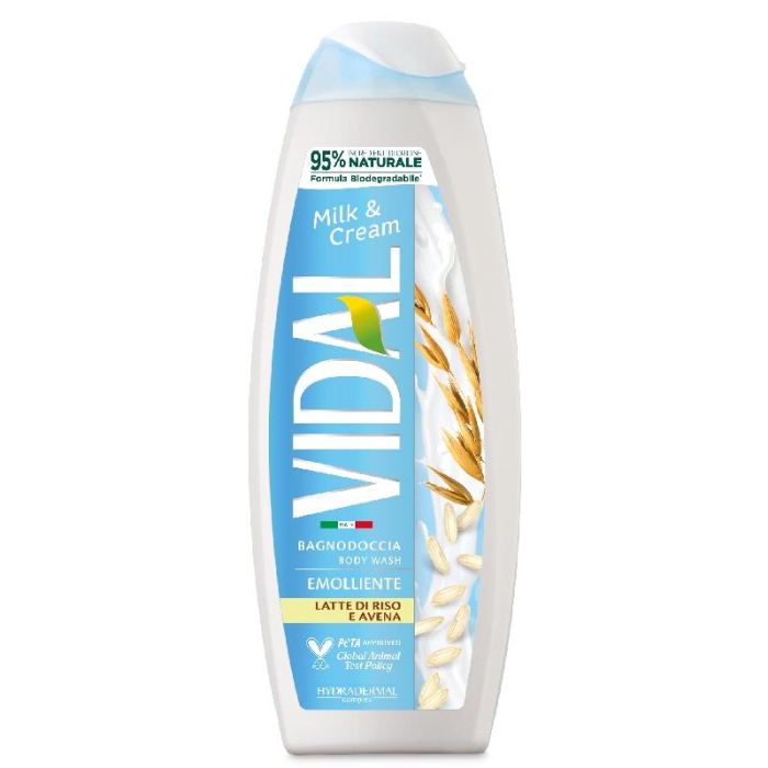 Vidal Milk & Cream are o formulă delicată pe bază de lapte de orez și ovăz, cunoscute pentru efectul lor calmant și emolient. Oferă hidratare și catifelare, fiind ideal pentru pielea sensibilă sau uscată. Parfumul său cremos și delicat oferă o experiență plăcută și relaxantă la fiecare utilizare.