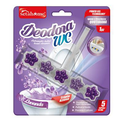 Setahome Deodora WC Lavanda combină eficiența curățării cu un parfum calmant de lavandă. Datorită tehnologiei Power Gel, eliberează o spumă activă care curăță la fiecare spălare, oferind triplă acțiune: igienizare, parfumare și prevenirea depunerilor. Ideal pentru o baie mereu curată și plăcut mirositoare.